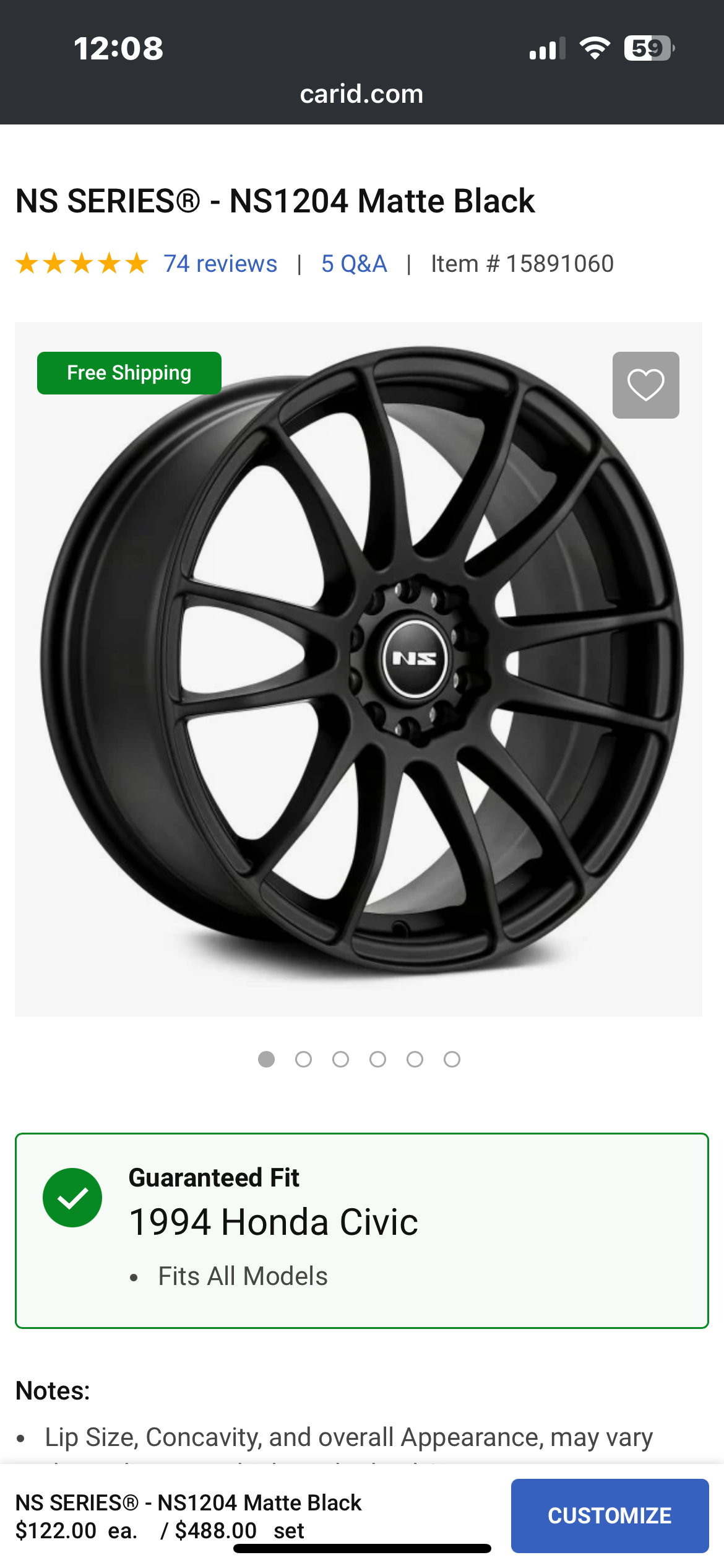 For Sale- brand new set of four 16x7 matte black NS Series rims mounted on Nitto Neogen tires. Brand new still wrapped from shipping, never put on my 94 Civic. Had them shipped and I’ve changed my mind. Complete with lug nuts and hub centric rings. I’m located in central IL. I paid $1,317.20 total. Email me at christopherlpetty@yahoo.com I can send actual photos of rim set.